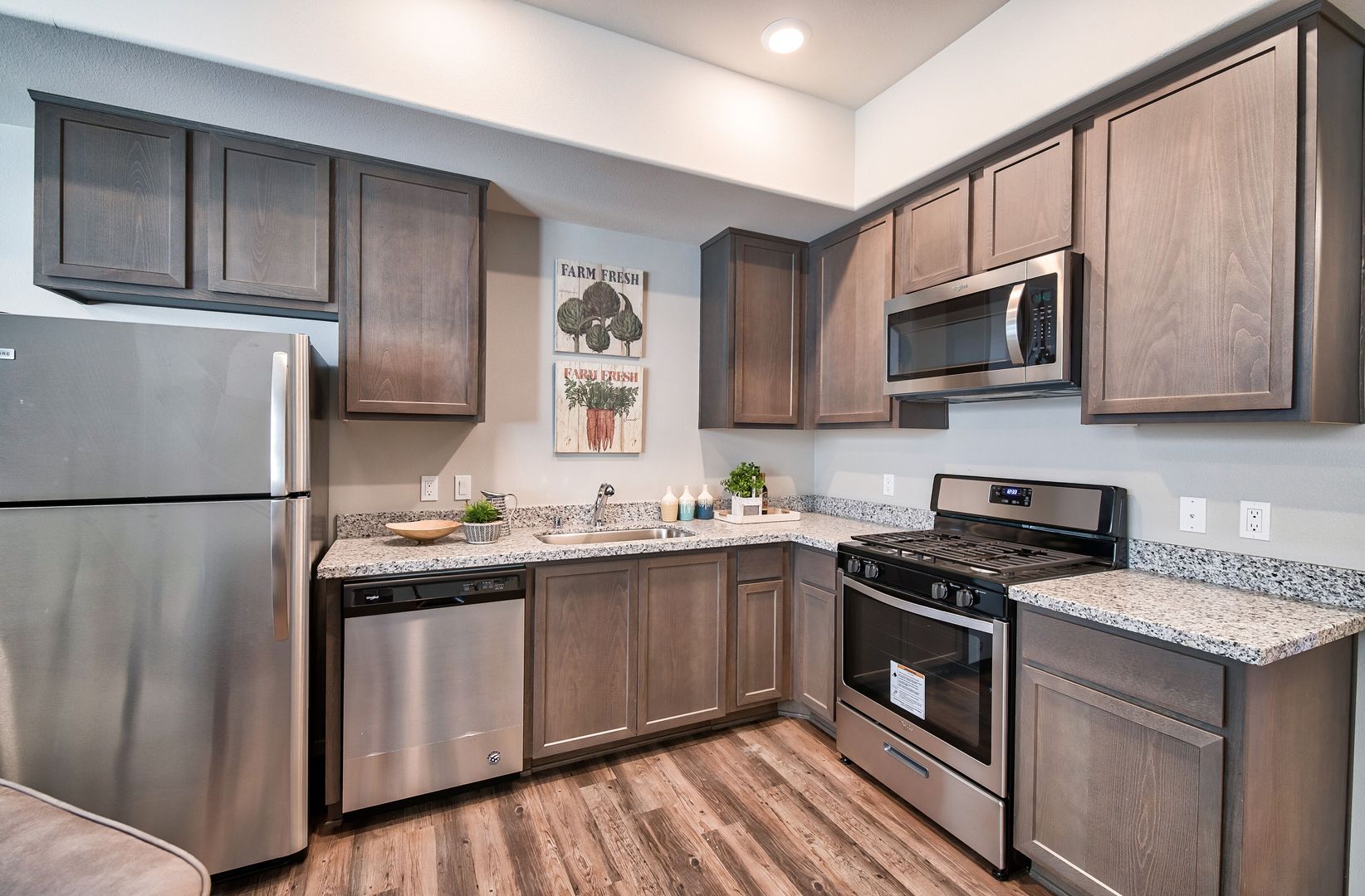 This is luxury living with upscale finishes, spacious apartment homes, custom cabinetry, granite counter tops, stainless steel appliances, secure walk-in access, washer and dryer inside of your home, wood-like floors (vinyl wood plank flooring), assigned parking, central air conditioning and heating system, club house, Jacuzzi/pool, BBQ area, Pet area.