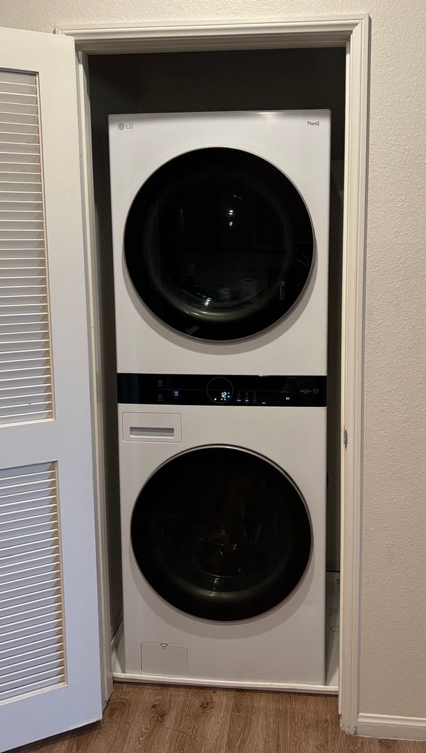 Welcome home to this second-floor 2-bedroom, 2-bath apartment in National City. Designed for comfort and style, the home features vinyl flooring throughout, a modern kitchen with an island and stainless steel appliances, a front-loading in-unit washer and dryer AND a walk in closet in the master bedroom. Step out onto your spacious private patio—perfect for soaking up the California sunshine or entertaining guests. Enjoy the convenience of elevator access, dedicated parking, and a pet-friendly community. This home offers the perfect blend of comfort, convenience, and modern living.